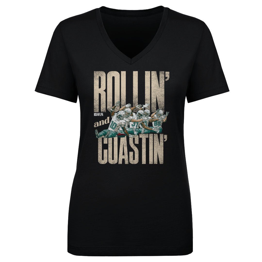 Tyreek Hill Miami Rollin And Coastin WHT - Women's V-Neck T-Shirt / Black / S is backordered and will ship as soon as it is back in stock.