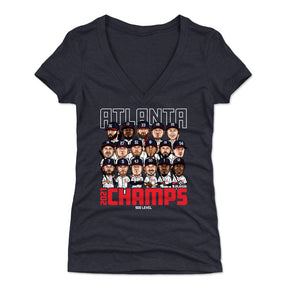 Atlanta Baseball 2021 Champions WHT - Women's V-Neck T-Shirt / Tri Navy / S is backordered and will ship as soon as it is back in stock.