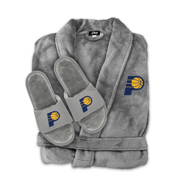 The Boss Bundle includes a matching pair of our grey fur slipper sandals & a super comfortable grey fleece robe.