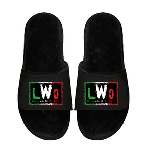 LWO Mexico Flag Black Fur Slides