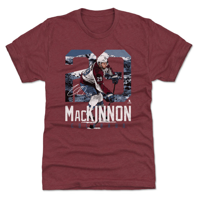 Nathan MacKinnon Colorado Landmark WHT - Men's Premium T-Shirt / Heather Maroon / S is backordered and will ship as soon as it is back in stock.