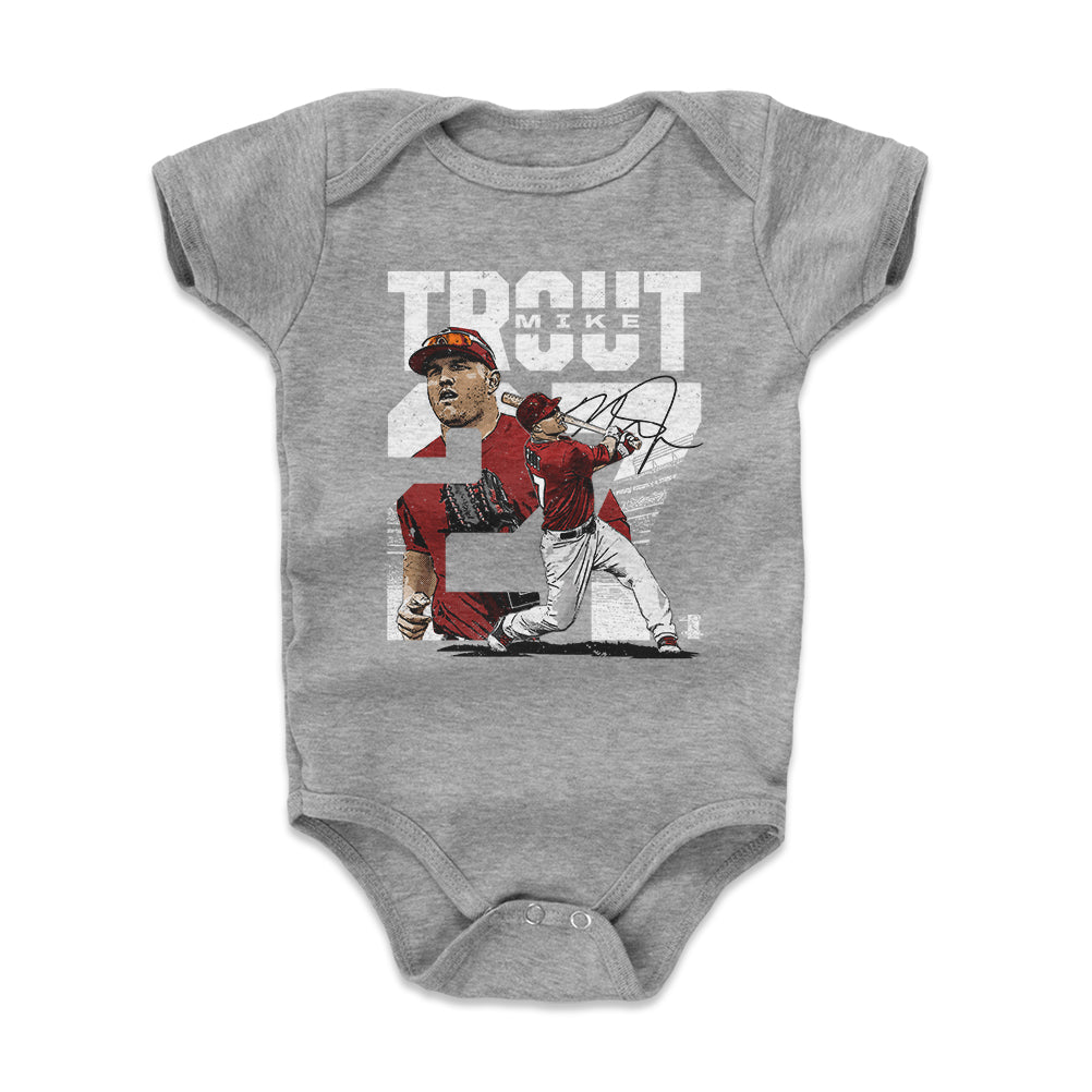 Mike Trout Collage W WHT - Kids Baby Onesie / Red / 3-6 Months is backordered and will ship as soon as it is back in stock.