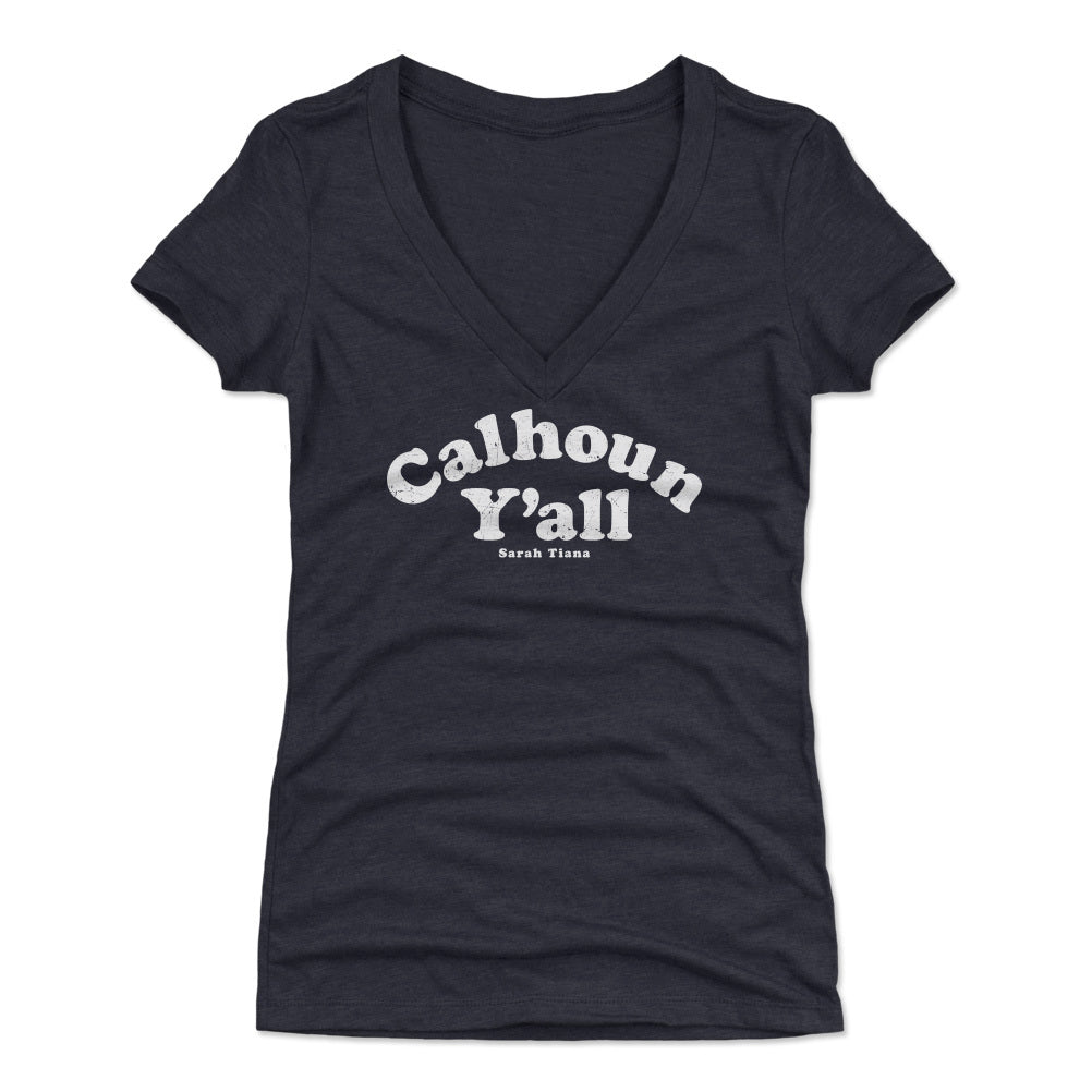 Sarah Tiana Calhoun Y'all WHT - Women's V-Neck T-Shirt / Tri Black / S is backordered and will ship as soon as it is back in stock.